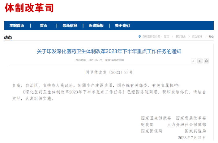 《深化醫(yī)藥衛(wèi)生體制改革2023年下半年重點工作任務》