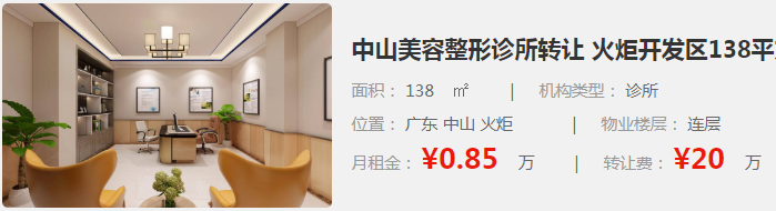 中山美容整形診所轉(zhuǎn)讓 火炬開(kāi)發(fā)區(qū)138平方