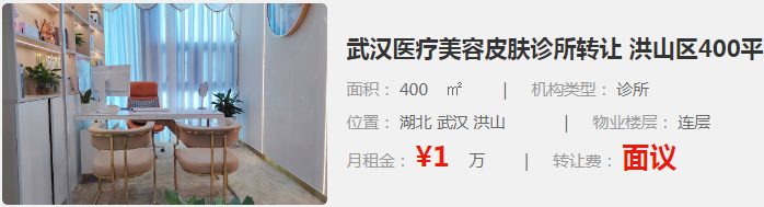 武漢醫(yī)療美容皮膚診所轉(zhuǎn)讓 洪山區(qū)400平方