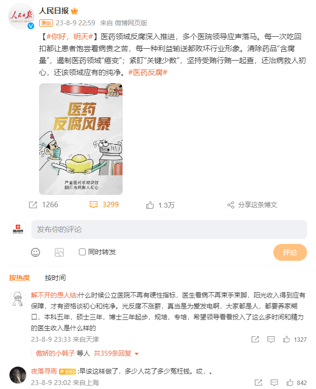 人民日報評醫(yī)藥反腐:醫(yī)療反腐要“標本兼治”,改變“帶金銷售”是關(guān)鍵播報文章