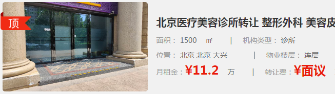 3. 北京醫(yī)療美容診所轉(zhuǎn)讓(整形外科、美容皮膚科)