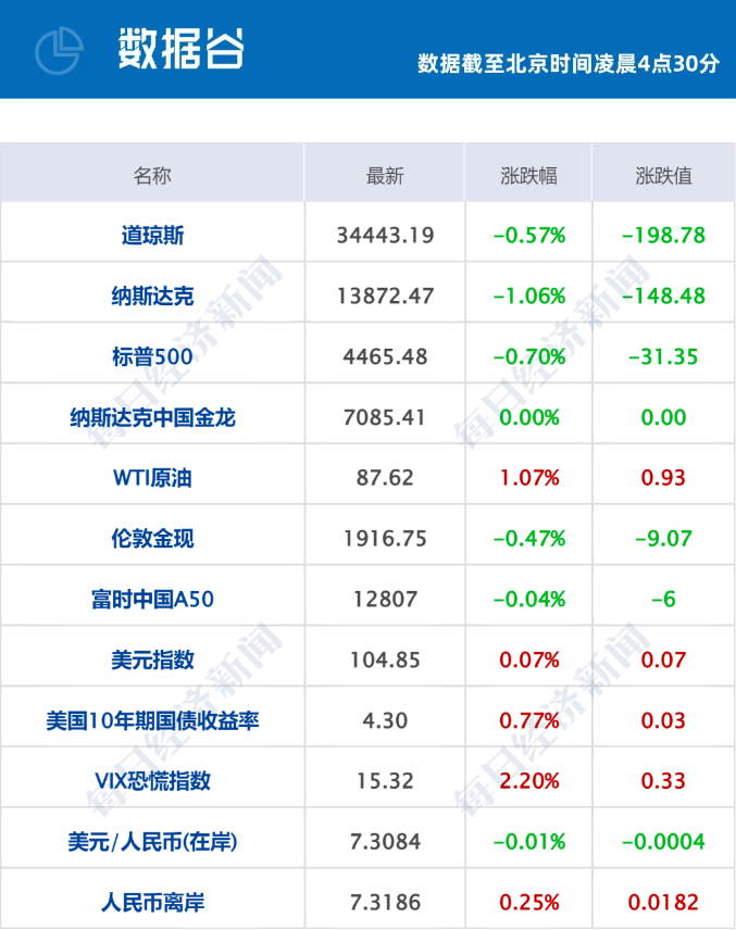 熱門中概股多數(shù)收跌,納斯達克中國金龍指數(shù)跌0.53%,每日優(yōu)鮮跌超9%,新東方、百勝中國、蔚來跌超2%,京東、網(wǎng)易跌超1%,瑞幸咖啡粉單市場漲超4%,名創(chuàng)優(yōu)品漲超3%,富途控股漲超2%。