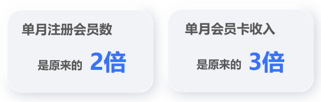 在使用分銷后我們的會員注冊量也翻了一倍。同時,這還不能只看會員數(shù)的增加,我們的會員卡收入也增加了3倍。