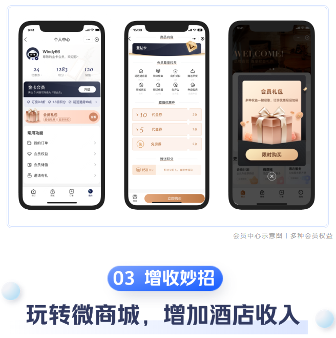 因?yàn)槲覀冏詴T后,在小程序上預(yù)訂是有積分的。而且這個積分和微商城是一個聯(lián)動的事情,會員要想兌換使用積分,也必須要到我的小程序商城上去兌換。比如說購買一些房費(fèi)優(yōu)惠券、兌換日常小商品甚至我們的電競相關(guān)的券或禮品,都是很好的沉淀會員用戶的手段,目前的話我們85%的會員都是來自小程序注冊的。