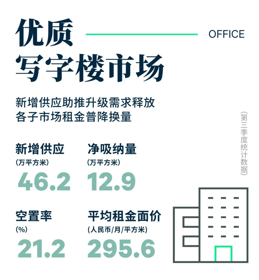 在成熟區(qū)域的甲級寫字樓占新增供應(yīng)總量的比例超過四分之三,為市場帶來了更多升級空間。在各區(qū)政府招商政策的支持下,部分新項目在預(yù)租期內(nèi)成功鎖定大面積租戶的搬遷落位,預(yù)租總面積超過13萬平方米。