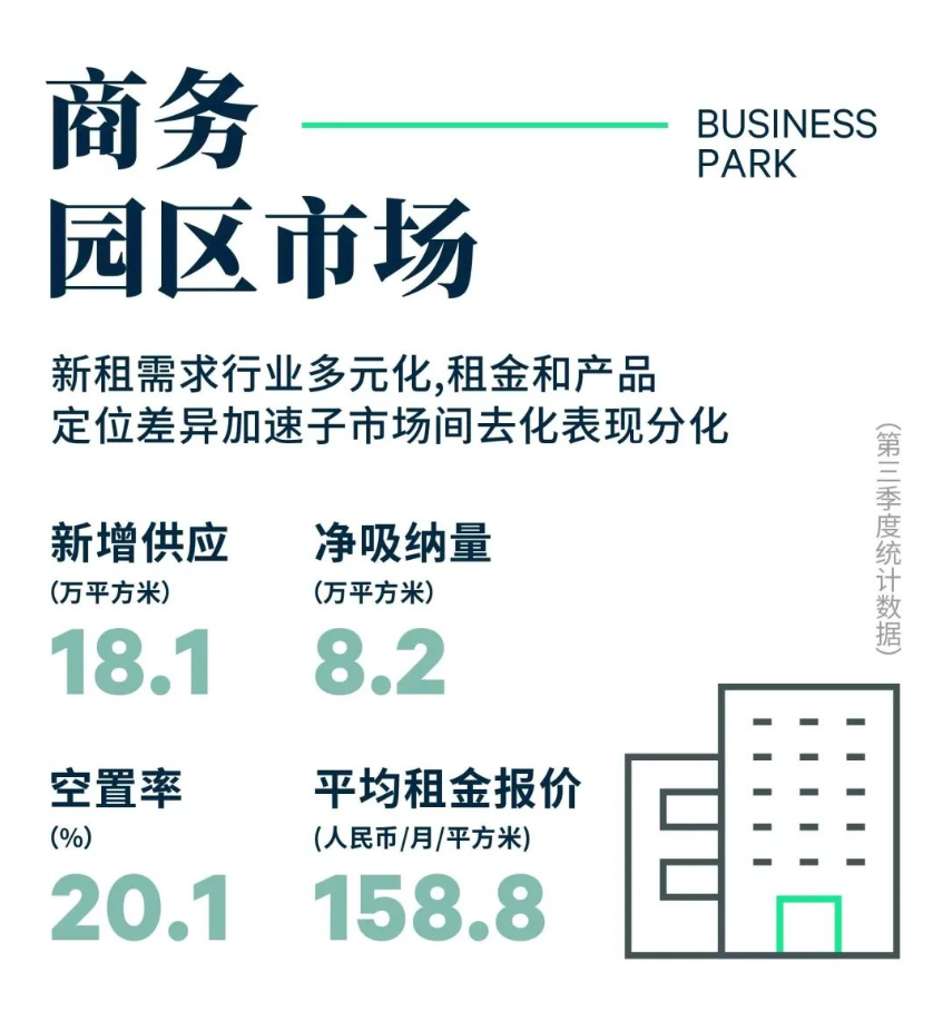 而在北京商務(wù)園區(qū)市場方面,第三季度迎來三個新項目,共計體量為18.1萬平方米。其中兩個項目是新增特色產(chǎn)業(yè)園區(qū),集研發(fā)辦公、部分生產(chǎn)制造功能于一體,均位于亦莊經(jīng)濟開發(fā)區(qū),分別定位醫(yī)藥健康和智能制造、集成電路產(chǎn)業(yè);另一個項目是類辦公項目,位于上地子市場,已被頭部互聯(lián)網(wǎng)企業(yè)整體預(yù)租和定制。
