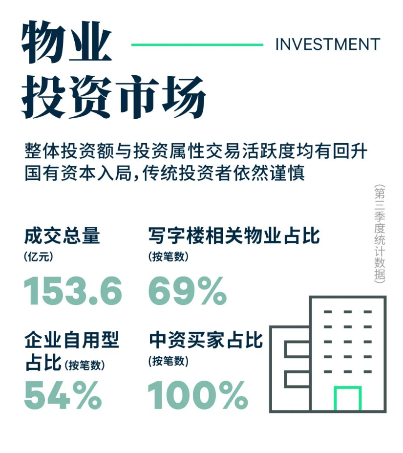 北京物業(yè)投資市場交易筆數(shù)和金額也有顯著上漲。季內(nèi)一共錄得13筆大宗交易累計金額達153.6億元,環(huán)比上漲189%,和去年同期相比亦上漲86%。其中超過八成投資金額流向符合國家政策戰(zhàn)略引導(dǎo)方向的產(chǎn)業(yè)園區(qū)等類辦公板塊。其中企業(yè)購置自用需求繼續(xù)保持活躍,例如季內(nèi)單筆交易額最大的交易來自某科技企業(yè)購置中關(guān)村子市場的辦公樓宇自用。此外,投資屬性的辦公類交易呈回暖態(tài)勢中郵人壽以42.6億元交易收購位于安定門的中糧置地廣場,是近一年來北京首個單筆超過30億元的投資屬性交易。該項目緊鄰北二環(huán)與中軸線是原三利百貨舊址上拆改重建的甲級寫字樓并具有建筑和運營標準高、租戶結(jié)構(gòu)優(yōu)質(zhì)穩(wěn)定、土地剩余年限長等優(yōu)勢是北京市場稀缺的核心型資產(chǎn)因而備受機構(gòu)投資者青睞。另外隨著“新經(jīng)濟地產(chǎn)”模式逐步成熟涉及的相關(guān)板塊受到投資者和企業(yè)的持續(xù)關(guān)注季內(nèi)錄得險資購入順義片區(qū)養(yǎng)老公寓外地企業(yè)購入園區(qū)附近酒店以及城投平臺購入亦莊子市場工業(yè)廠房等交易為大宗投資市場注入活力按買家類型看以險資為主的機構(gòu)投資者交易金額占比達41%而政府城投平臺也在特色產(chǎn)業(yè)園區(qū)或工業(yè)廠房積極拓展。