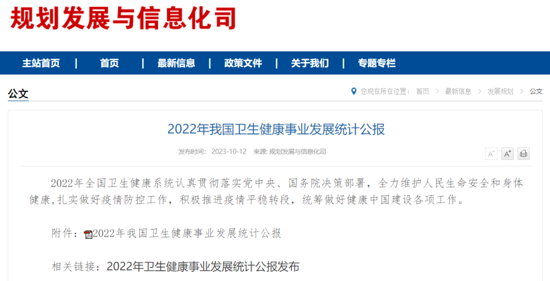 2023年10月12日,國(guó)家衛(wèi)生健康委發(fā)布《2022年我國(guó)衛(wèi)生健康事業(yè)發(fā)展統(tǒng)計(jì)公報(bào)》。根據(jù)《公報(bào)》,2022年,全國(guó)醫(yī)療衛(wèi)生機(jī)構(gòu)總診療人次84.2億,與上年基本持平。全國(guó)中醫(yī)類醫(yī)療衛(wèi)生機(jī)構(gòu)總數(shù)80319個(gè),比上年增加2983個(gè),總診療人次12.3億,比上年增加0.2億人次?!豆珗?bào)》顯示,我國(guó)政府投入不斷增加,醫(yī)療衛(wèi)生資源提質(zhì)擴(kuò)容,衛(wèi)生服務(wù)體系不斷健全,健康中國(guó)建設(shè)穩(wěn)步推進(jìn)。