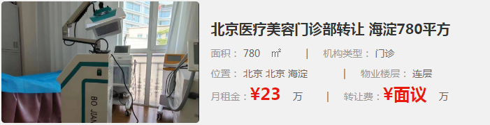 4.北京醫(yī)療美容診所轉(zhuǎn)讓(整形外科、美容皮膚科)