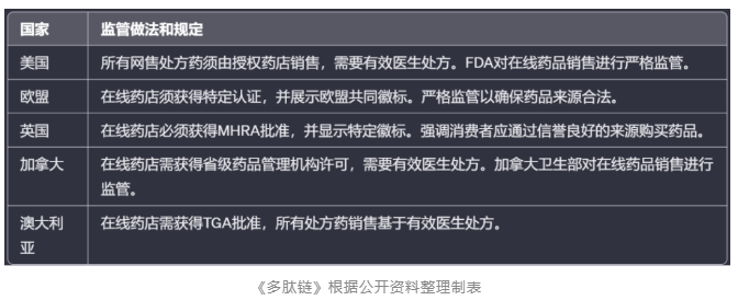 例如,在美國(guó),所有網(wǎng)絡(luò)銷售的處方藥必須由授權(quán)藥店提供,并需有效醫(yī)生處方,美國(guó)食品藥品監(jiān)督管理局(FDA)對(duì)此實(shí)施嚴(yán)格監(jiān)管。
