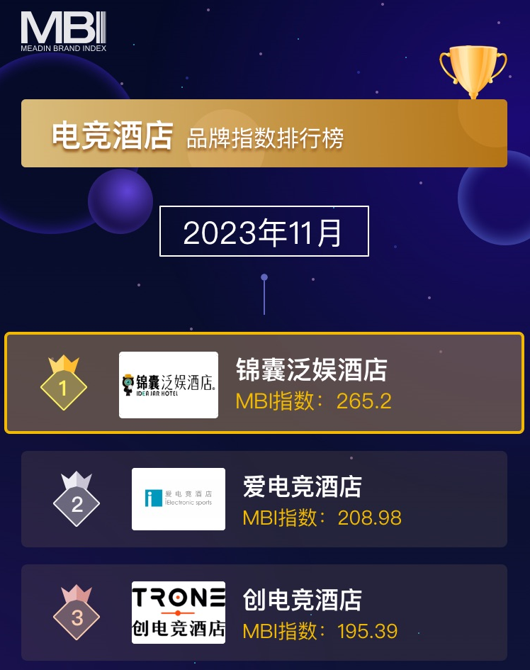 邁點研究院公布2023年11月電競酒店排行榜