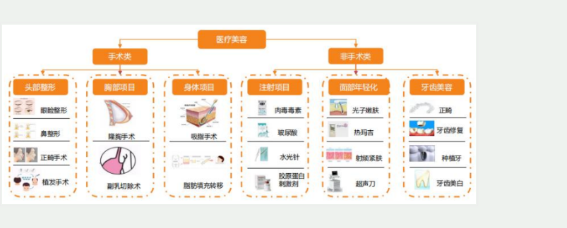 醫(yī)療美容根據(jù)是否需要手術(shù),分為手術(shù)類和非手術(shù)類醫(yī)療美容,均是由經(jīng)注冊(cè)的專業(yè)醫(yī)師及醫(yī)療專家進(jìn)行。手術(shù)類醫(yī)療美容服務(wù)指的是通過(guò)手術(shù)對(duì)胸、鼻、眼皮及其他身體部位進(jìn)行侵入性的改變,旨在從根本上改變外觀。