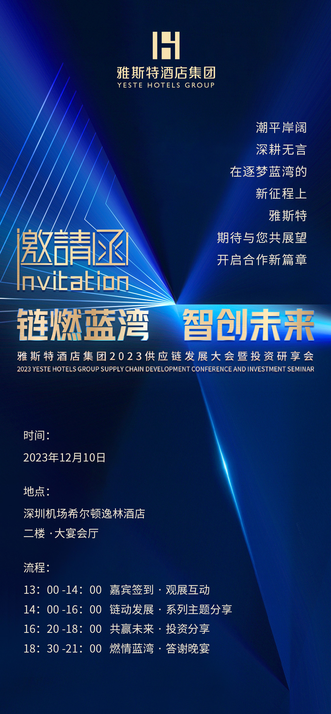 雅斯特酒店集團(tuán)2023供應(yīng)鏈發(fā)展大會暨投資研享會將于12月10深圳機(jī)場希爾頓逸林酒店開幕