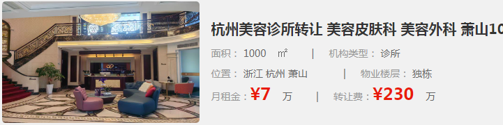 杭州美容診所轉(zhuǎn)讓 美容皮膚科 美容外科 蕭山1000平方