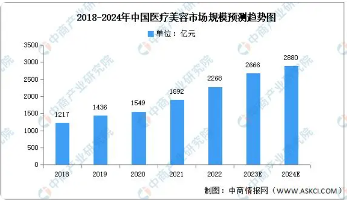 近年來,消費(fèi)者愛美需求日益旺盛,我國醫(yī)療美容行業(yè)發(fā)展迅速,市場規(guī)模持續(xù)增長。中商產(chǎn)業(yè)研究院發(fā)布的《2022-2027年中國醫(yī)療美容行業(yè)深度分析及發(fā)展趨勢研究預(yù)測報(bào)告》顯示,2022年中國醫(yī)療美容市場規(guī)模達(dá)2268億元,同比增長19.87%。中商產(chǎn)業(yè)研究院分析師預(yù)測,2023年我國醫(yī)療美容市場規(guī)模將達(dá)2666億元,2024年將達(dá)2880億元。
