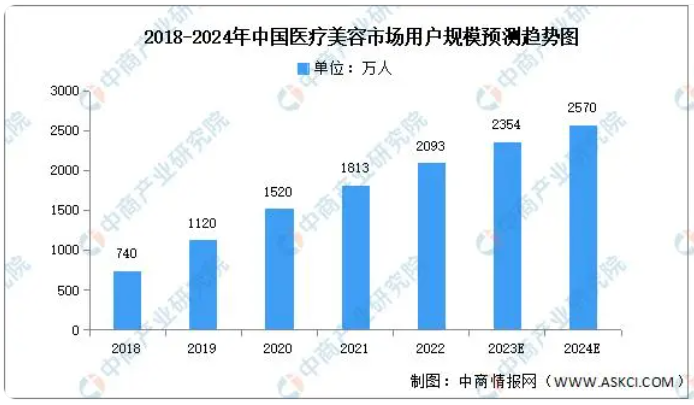 我國醫(yī)療美容市場用戶規(guī)模持續(xù)擴(kuò)張,中商產(chǎn)業(yè)研究院發(fā)布的《2022-2027年中國醫(yī)療美容行業(yè)市場前景調(diào)查及投融資戰(zhàn)略研究報(bào)告》顯示,2022年醫(yī)療美容用戶規(guī)模達(dá)2093萬人,同比增長15.44%,未來,70后、80后對醫(yī)美的接受度逐步提高,醫(yī)美消費(fèi)者數(shù)量跨入長期穩(wěn)定增長時(shí)代。中商產(chǎn)業(yè)研究院分析師預(yù)測,2023年我國醫(yī)美市場用戶規(guī)模將達(dá)2354萬人,2024年將達(dá)2570萬人。