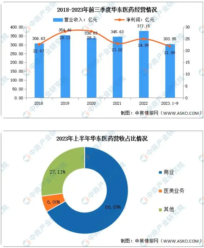 2023年前三季度實(shí)現(xiàn)營業(yè)收入303.95億元,同比增長9.1%;實(shí)現(xiàn)歸母凈利潤21.89億元,同比增長10.5%。2023年上半年主營產(chǎn)品包括商業(yè)、醫(yī)美業(yè)務(wù),分別占整體營收的66.89%、6.00%。