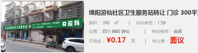 綿陽游仙社區(qū)衛(wèi)生服務(wù)站轉(zhuǎn)讓 門診 300平方
