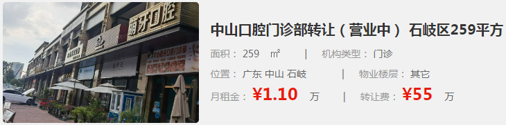 中山口腔門診部轉(zhuǎn)讓(營業(yè)中) 石岐區(qū)259平方