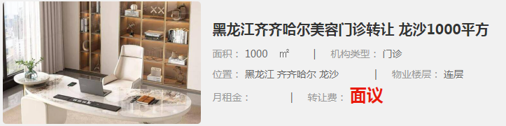 黑龍江齊齊哈爾美容門診轉(zhuǎn)讓 龍沙1000平方