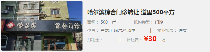 哈爾濱綜合門診轉(zhuǎn)讓 道里500平方