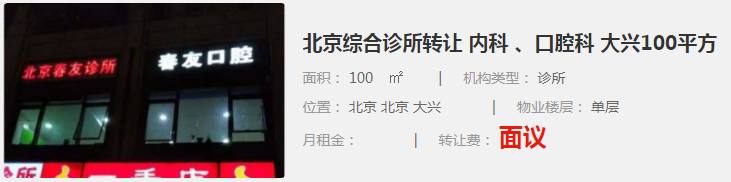 北京綜合診所轉(zhuǎn)讓 內(nèi)科 、口腔科 大興100平方