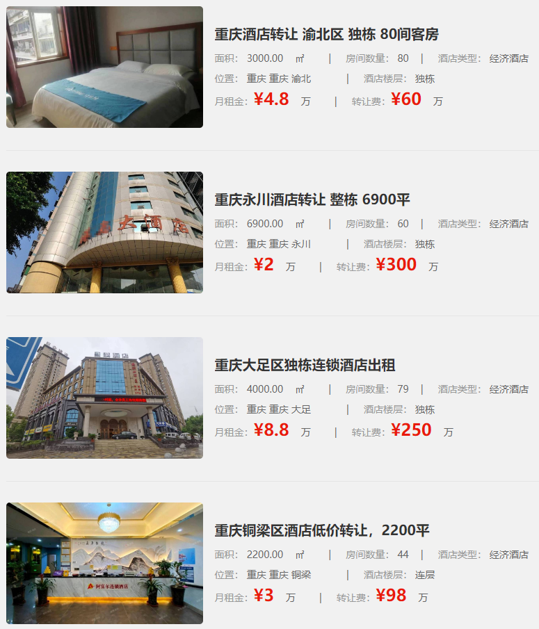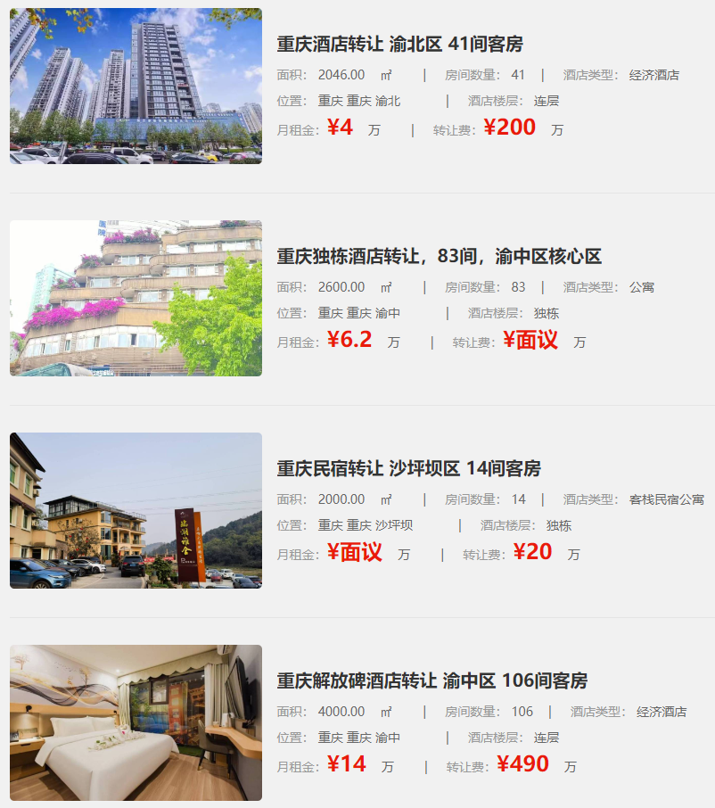 重慶酒店轉(zhuǎn)讓 渝北區(qū) 41間客房