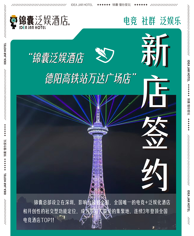 作為國內(nèi)領(lǐng)先的電競泛娛樂酒店品牌,錦囊泛娛酒店始終走在行業(yè)前沿,不斷探索和滿足年輕人的多樣化需求。今天,錦囊驕傲地宣布:錦囊泛娛酒店正式簽約德陽高鐵站萬達廣場店,將為這座城市帶來全新的電競泛娛樂體驗。