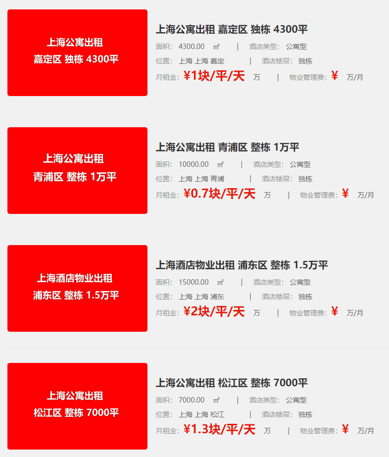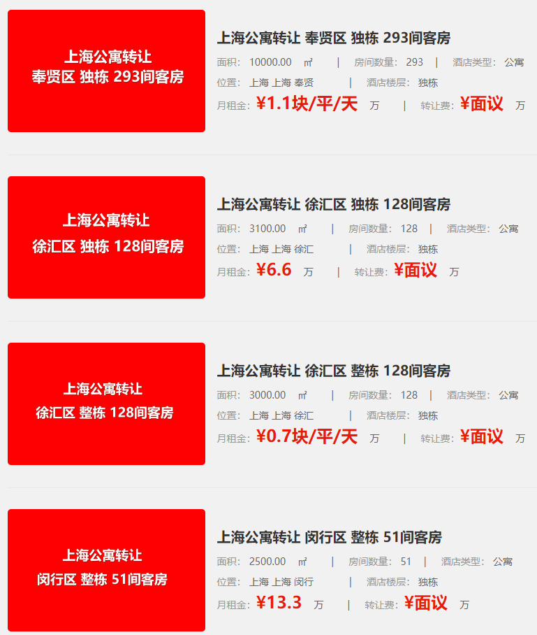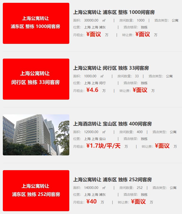 先看上海整棟酒店公寓轉(zhuǎn)讓和出租的,再看出售
