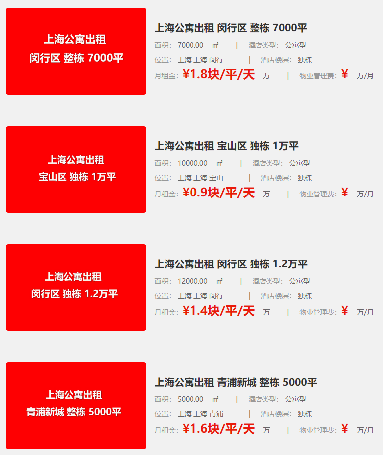 上海公寓出租 閔行區(qū) 獨棟 1.2萬平