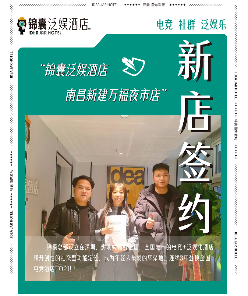 錦囊泛娛酒店南昌新建萬福夜市店簽約加盟,為年輕人打造電競社交新聚點(diǎn)