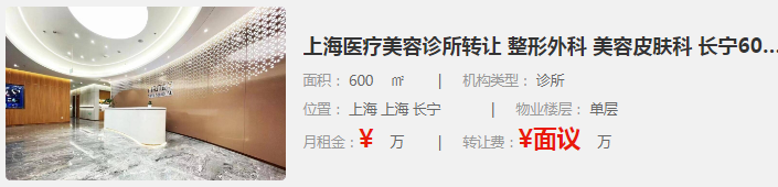 以上是關(guān)于上海醫(yī)療美容門診和診所轉(zhuǎn)讓的基本信息,如有興趣可聯(lián)系相關(guān)負(fù)責(zé)人獲取更多詳細(xì)信息。