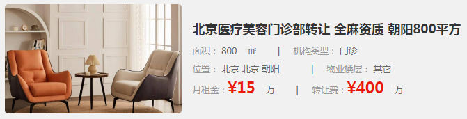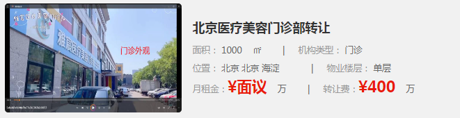 1.北京醫(yī)療美容門診部轉讓(海淀區(qū),面積1000㎡)