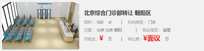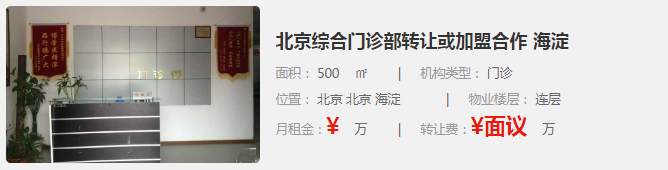 2.北京綜合門診部轉讓或加盟合作(海淀區(qū),面積500㎡)
