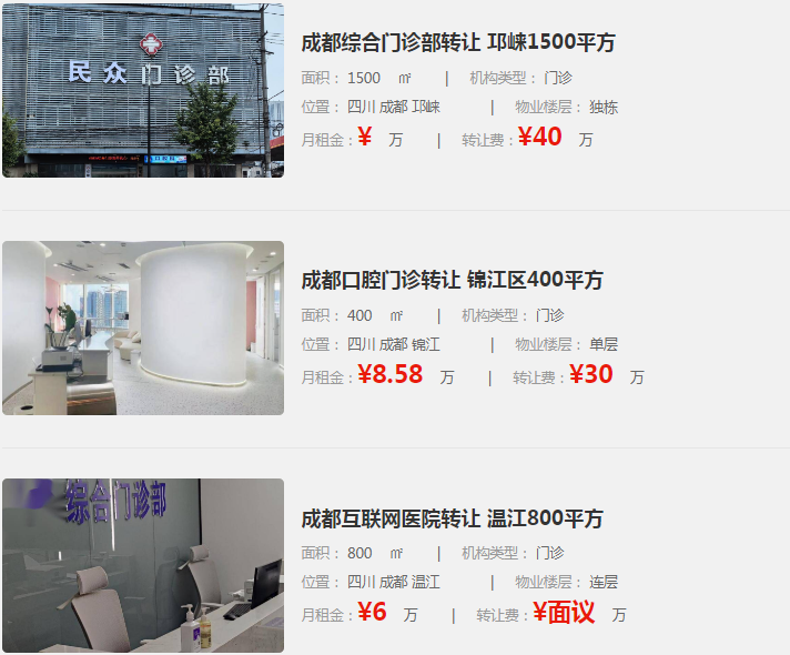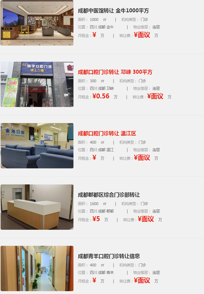 以下是指點網(wǎng)提供關(guān)于成都地區(qū)醫(yī)醫(yī)院轉(zhuǎn)讓和出租信息: