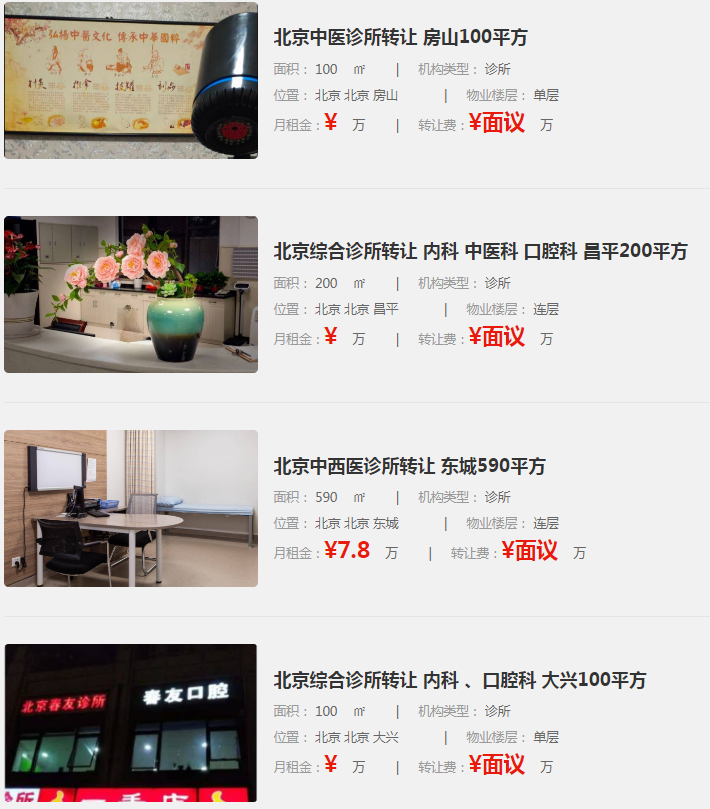 以下是指點網(wǎng)提供北京部分診所轉(zhuǎn)讓信息: