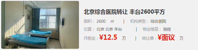北京綜合醫(yī)院轉(zhuǎn)讓 豐臺(tái)2600平方