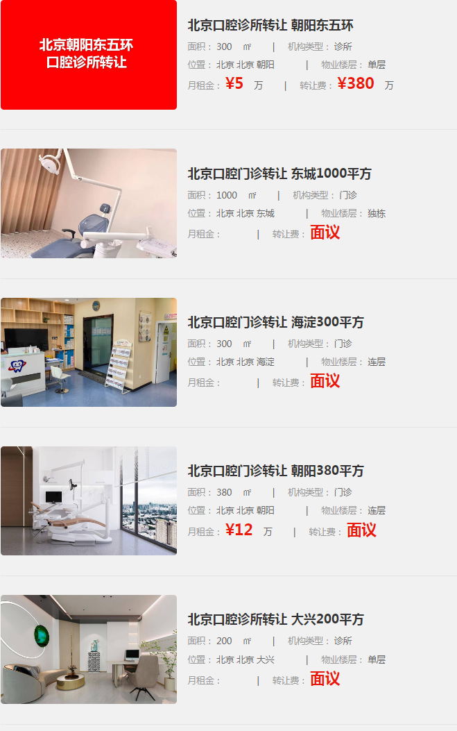 三、以下是指點(diǎn)網(wǎng)提供整理的北京口腔診所和門(mén)診轉(zhuǎn)讓信息: