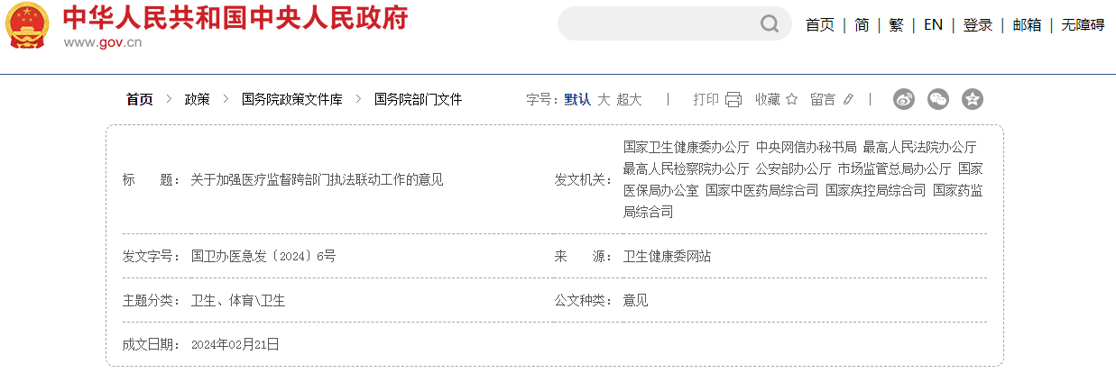 關(guān)于加強(qiáng)醫(yī)療監(jiān)督跨部門執(zhí)法聯(lián)動工作的意見