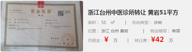 浙江臺州中醫(yī)診所轉讓(黃巖51平方)