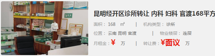 昆明經(jīng)開區(qū)診所轉讓(官渡168平方)