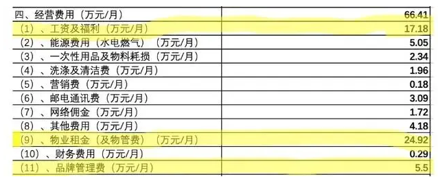 值得一提的是,在運(yùn)營成本中,除了常態(tài)的品牌管理費(fèi)用中所產(chǎn)生的費(fèi)用外,員工工資、水電費(fèi)、網(wǎng)費(fèi)、餐廳食材費(fèi)用、辦公用品的消耗、工程維護(hù)等費(fèi)用也占了很多的比重。