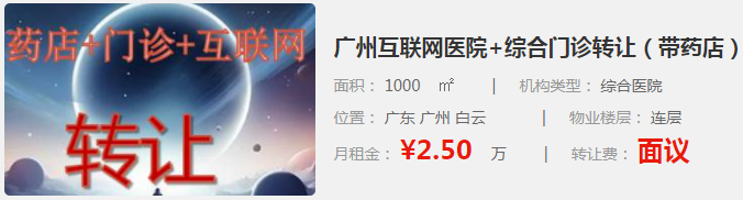 廣州互聯(lián)網(wǎng)醫(yī)院+綜合門(mén)診轉(zhuǎn)讓?zhuān)◣幍辏?/span>