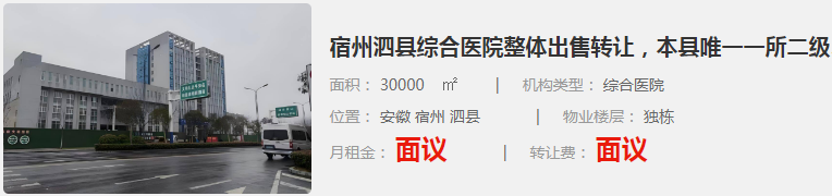 宿州泗縣綜合醫(yī)院整體出售轉(zhuǎn)讓