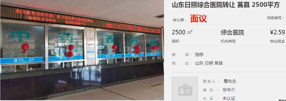 山東日照綜合醫(yī)院轉(zhuǎn)讓 莒縣 2500平方