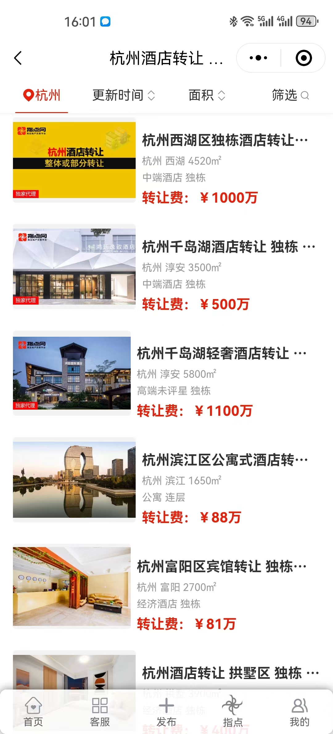 指點(diǎn)網(wǎng)旗下酒店交易網(wǎng)是國內(nèi)最大的酒店轉(zhuǎn)讓物業(yè)交易平臺(tái),注冊(cè)用戶超50萬。平臺(tái)致力于提供國內(nèi)外酒店轉(zhuǎn)讓、酒店物業(yè)招租、酒店資產(chǎn)出售、酒店周邊產(chǎn)品與服務(wù)信息等綜合服務(wù),打造真實(shí)有效的酒店交易平臺(tái),已是酒店行業(yè)必用平臺(tái)之一。