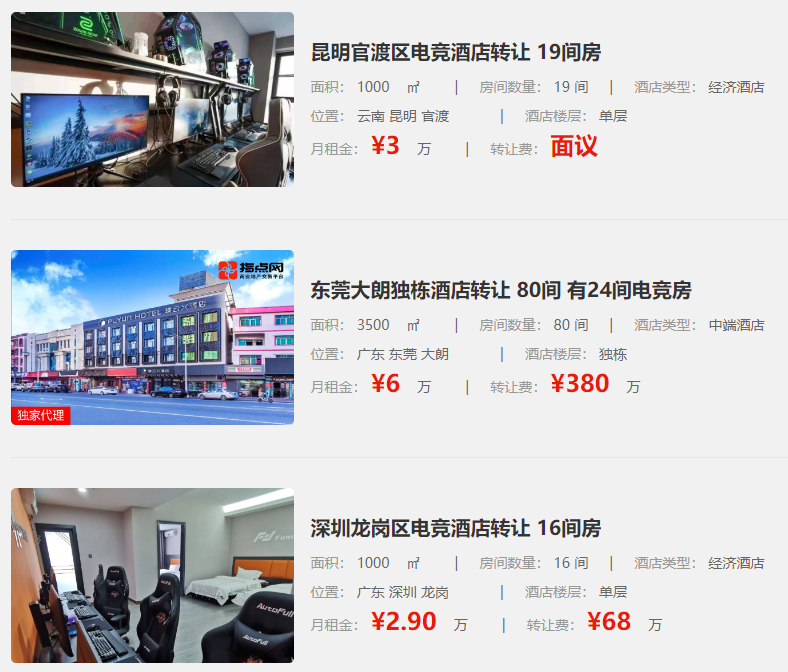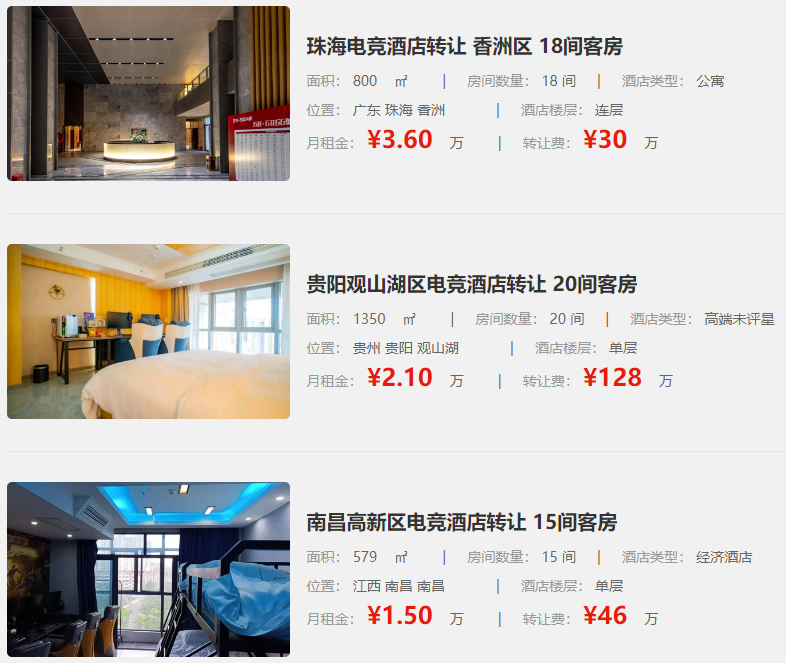 隨著電子競技的興起和年輕消費群體的壯大,電競酒店作為專為電子游戲愛好者提供的住宿新選擇,迅速在市場上占有一席之地。目前,全國各地的電競酒店轉(zhuǎn)讓信息反映了這一新興行業(yè)的活躍態(tài)勢和投資者的高度關(guān)注。