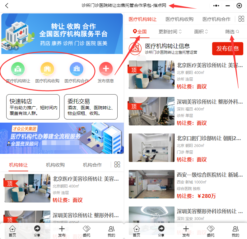 1.指點網(wǎng),這個比較專業(yè),信息最全。這是一個專門為醫(yī)療機構(gòu)轉(zhuǎn)讓承包托管平臺,可以為醫(yī)院轉(zhuǎn)讓和合作提供服務(wù),是一個非常全面和專業(yè)的醫(yī)療行業(yè)信息發(fā)布平臺。在該平臺上也可以發(fā)布醫(yī)療機構(gòu)轉(zhuǎn)讓、托管等信息,匯聚了全國各地的優(yōu)質(zhì)醫(yī)療機構(gòu),是值得推薦的醫(yī)療行業(yè)信息平臺。(支持微信小程序)