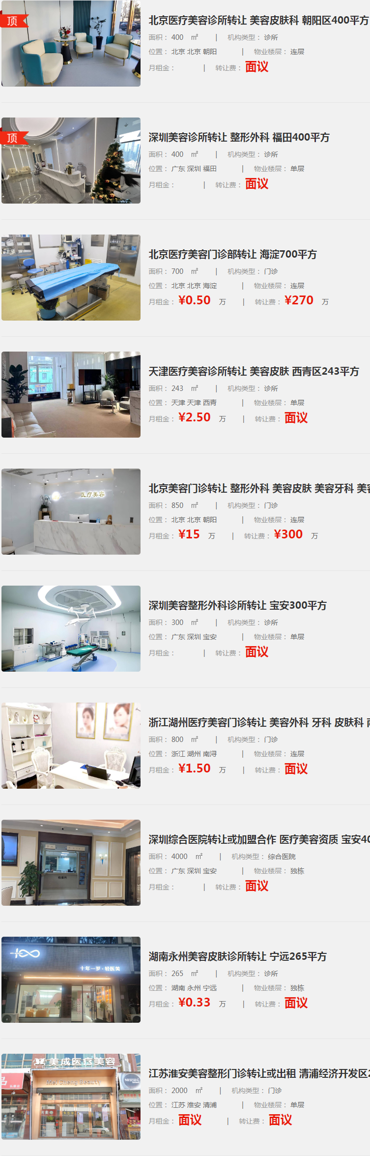 以下是指點網(wǎng)提供十所醫(yī)療美容及綜合醫(yī)院的轉(zhuǎn)讓信息匯總: