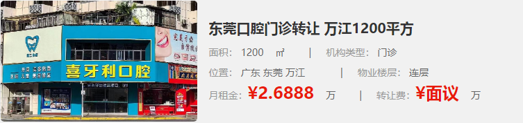 東莞口腔門診轉(zhuǎn)讓 萬江1200平方